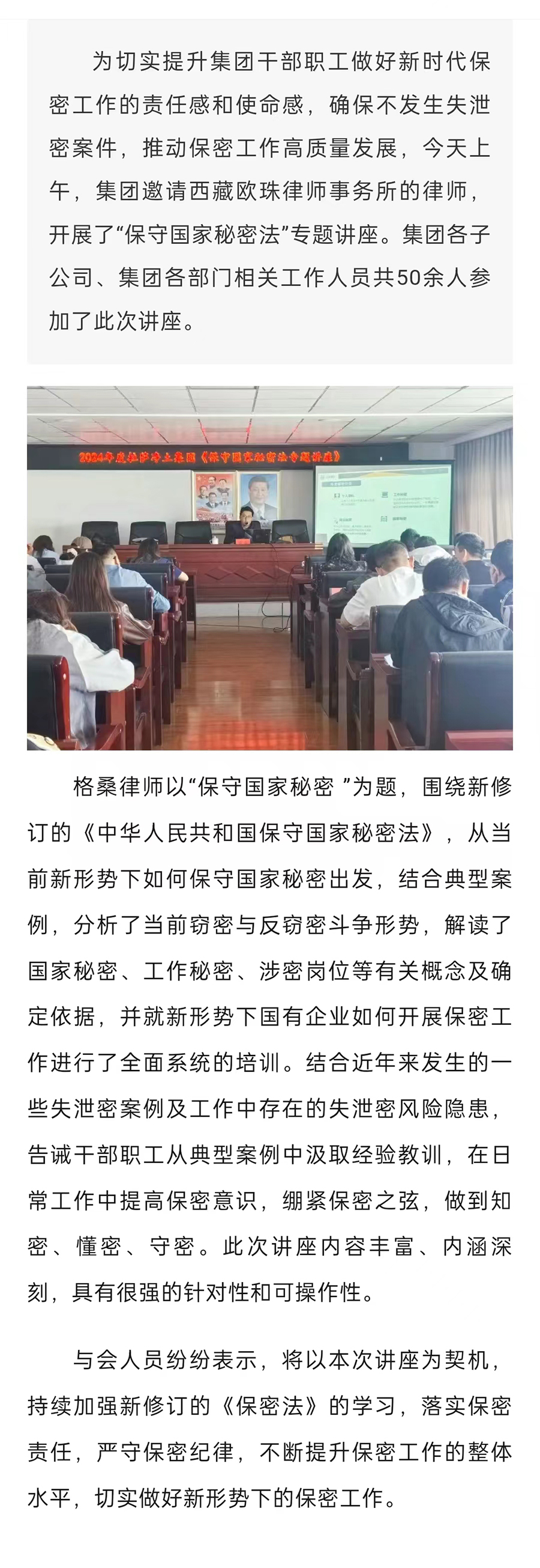 拉薩凈土集團(tuán)開展《保守國家秘密法》專題講座