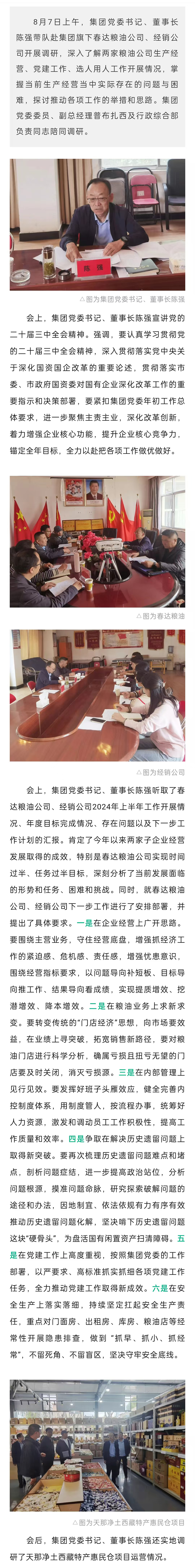 集團(tuán)黨委書記、董事長陳強(qiáng)帶隊(duì)赴春達(dá)糧油公司、經(jīng)銷公司開展實(shí)地考察調(diào)研工作