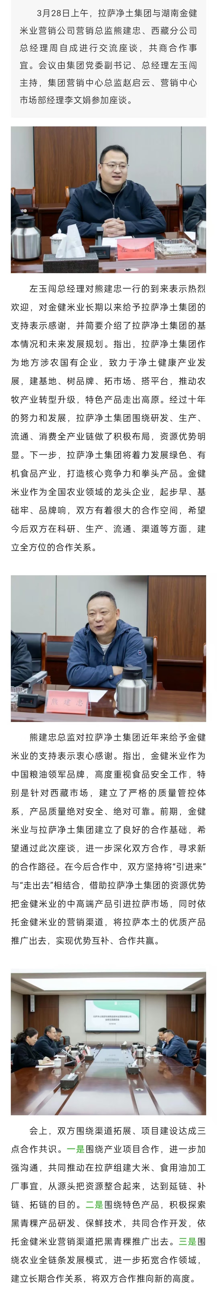 深化合作 共謀發(fā)展——拉薩凈土集團(tuán)與湖南金健米業(yè)營(yíng)銷公司召開業(yè)務(wù)交流座談會(huì)