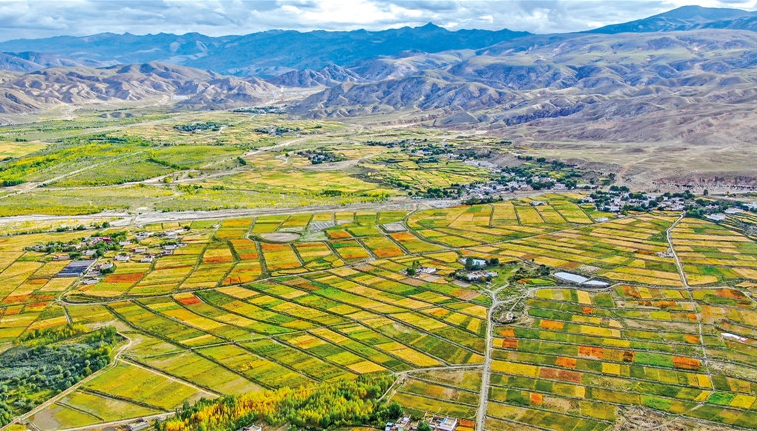 秋收時(shí)節(jié),尼木縣尼木河谷色彩斑斕的農(nóng)田。新華社記者 晉美多吉 攝